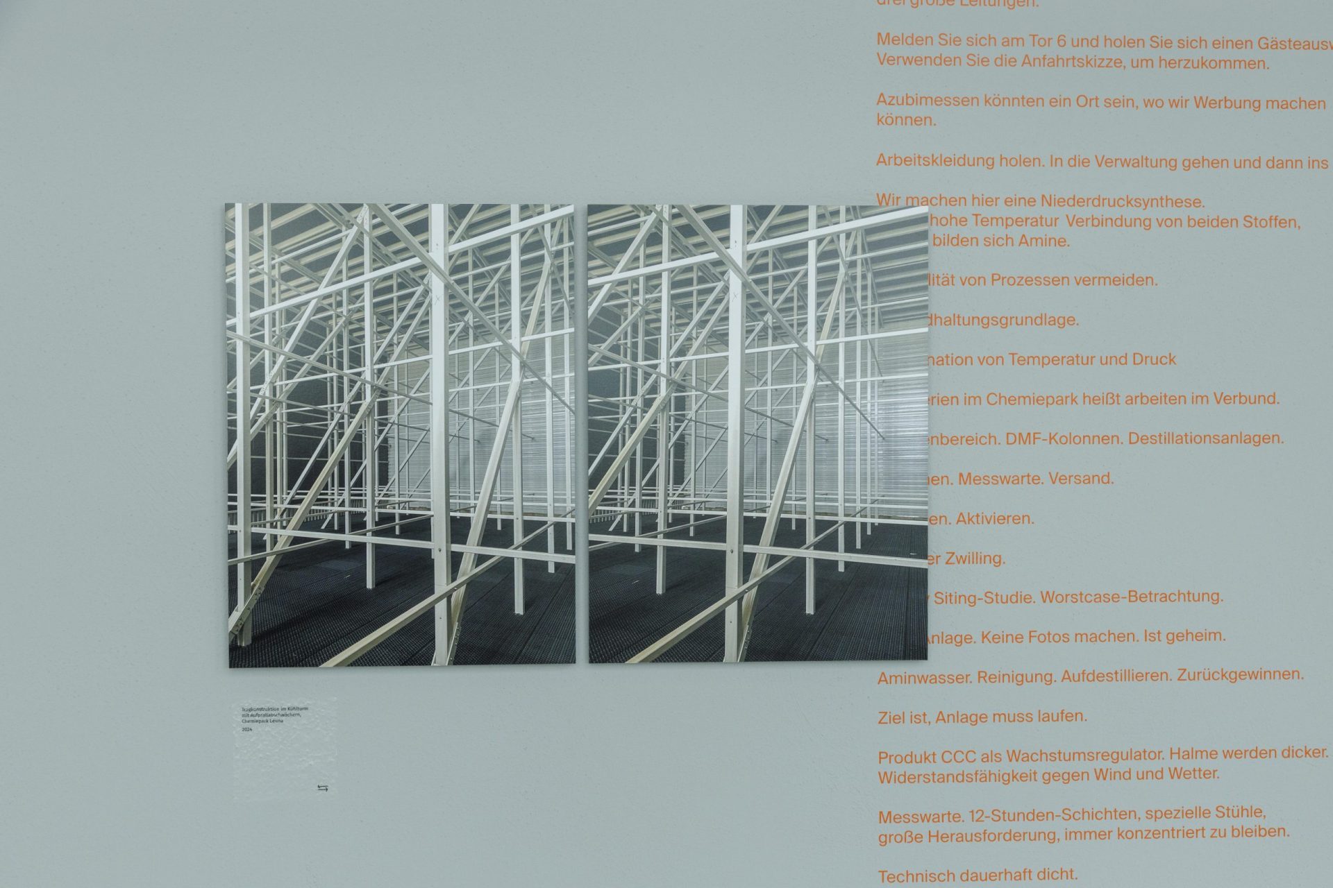 Anlass war das 70-jährige Jubiläum des Merseburger Campus 2024. Der Standort vereint die Geschichte zweier Institutionen: der Technischen Hochschule (TH) Leuna-Merseburg (1954 – 1993) und seit 1992 der Hochschule Merseburg. Im Zentrum stand neben der Geschichte das gegenwärtige Selbstverständnis der Hochschule, der regionale Wissenstransfer sowie die enge Verbindung zum Chemiestandort Leuna. Gezeigt werden zeitgenössische Fotografien, Installationen, wissenschaftliche und historische Objekte sowie multimediale Arbeiten. Die Ausstellung lädt als Denkraum und sozialer Ort dazu ein, die Hochschule neu zu sehen und über wissenschaftliche Praxis ins Gespräch zu kommen.